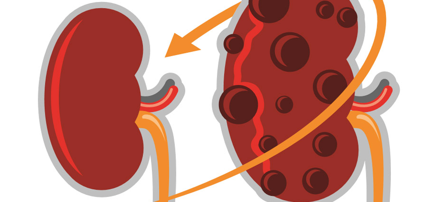 Enfermedad caracterizada por el desarrollo de quistes en los riñones, casi siempre por causa genéticas. La mayoría de las personas desarrollan insuficiencia renal. Los síntomas incluyen hipertensión, inflamación del abdomen y dolor lateral o en la espalda. El tratamiento consiste en tomar medicamentos para controlar la presión arterial, analgésicos.